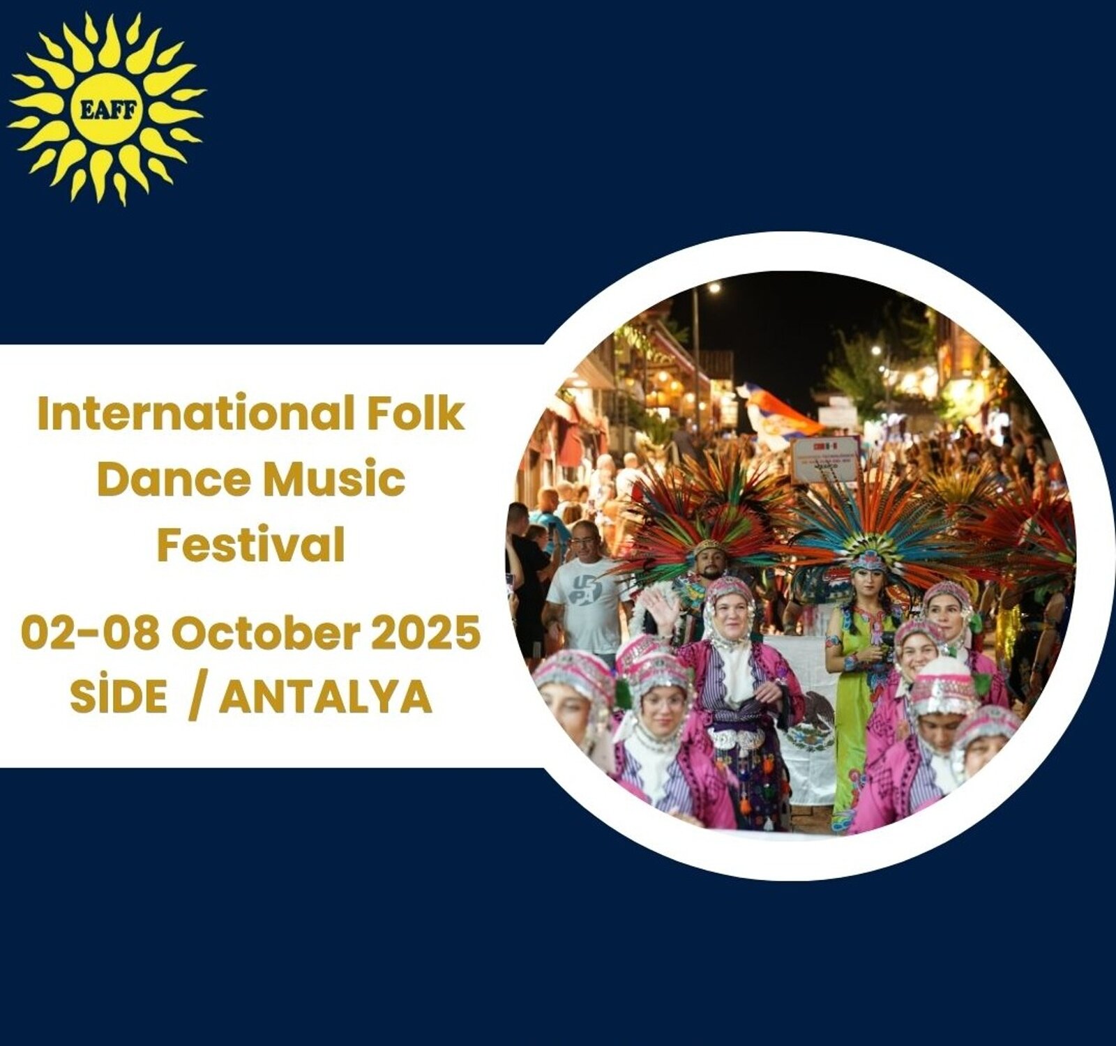 Bilgi: 02‑08 Ekim 2025 Side‑Manavgat/Antalya olarak planlanmış. İçerik: Dans & müzik odaklı festival. Not: Belde tatili ile birlikte değerlendirilebilir.