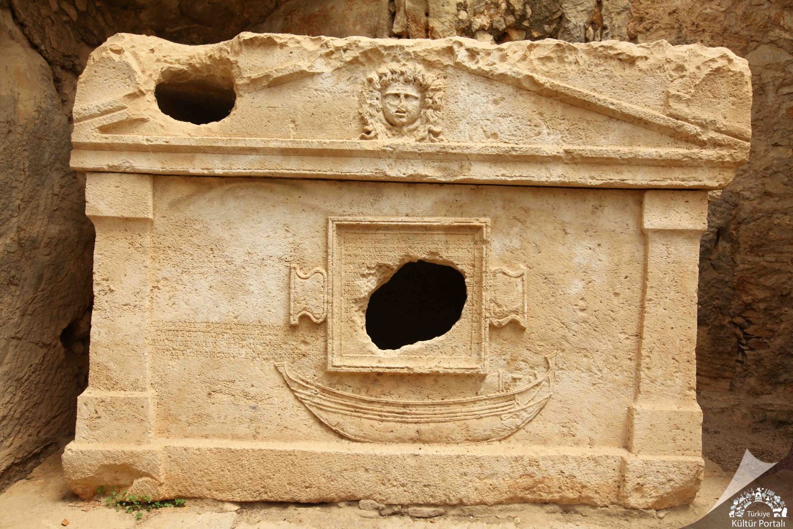 Kalıntılar arasında en ilginci ise Antalya Müzesi'nce yürütülen kazılarla gün ışığına çıkarılmış olan Kaptan Eudomus’un Lahdi'dir. Nehir ağzının hemen yanındaki kayalığın oyuğunda yer alan lahit, hem duygu dolu şiirsel ithaf yazıtında kaptanın adını vermesi hem de uzun kenarındaki gemi kabartmasında geminin şeklini resmetmesi açısından büyük önem taşımaktadır.
