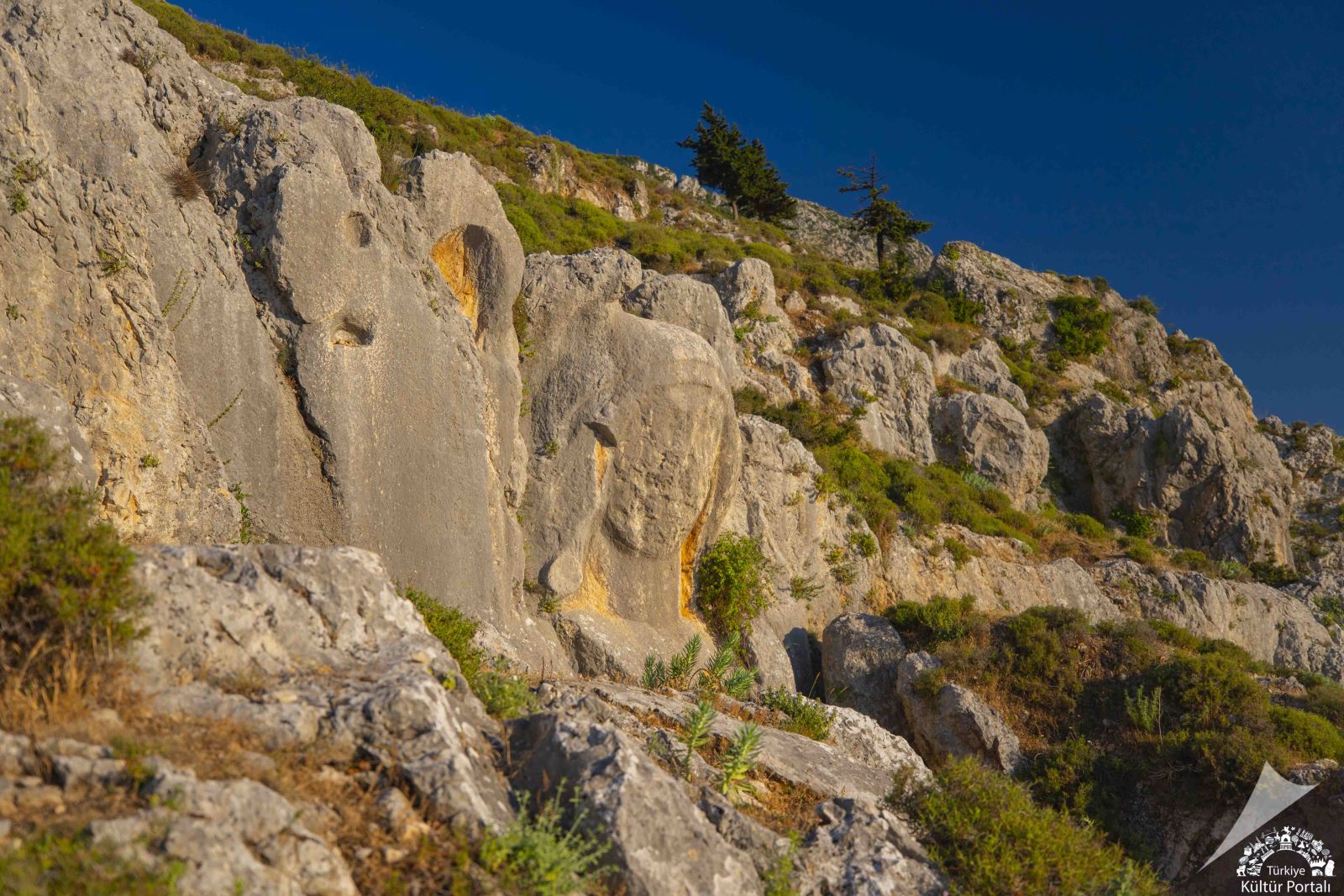 St. Pierre Kilisesi’nin doğusunda, kiliseye yaklaşık on dakikalık yürüyüş mesafesinde, patika bir yoldan ulaşılan Cehennem Kayıkçısı (Kharon) Kabartması bulunmaktadır. Büst şeklinde olan kabartma, başında bir örtü bulunan ve tamamlanamayan bir portreyi çağrıştırır. Cehennem Kayıkçısı Kharon, Yunan Mitolojisinde ölülerin ruhlarını Styks nehrinden geçirip yer altı ülkesine götürmekle görevlidir. MÖ 2. yüzyılda şehirde baş gösteren veba salgınına karşı halkı korumak ve daha fazla kayıp vermemek için dağın kente en hâkim noktasında kayaya oyulduğu bilinmektedir.