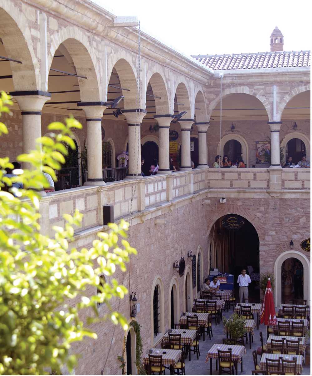 Han doğu-batı doğrultusunda dikdörtgen planlıdır. Alt kat odaları avluya, üst kat odaları revaklara açılır. Güney cephede girişi bulunmamaktadır. Kuzeybatıdaki koridor develikle (ahırların yer aldığı mekan) bağlantıyı sağlayan geçiş koridorudur. Alt katta yer alan dükkanlar bir duvarla ikiye bölünmüştür. Alt katta odaların iki bölümlü olması ve ocakların bulunmasından dolayı depo olarak kullanıldığı söylenebilir. İkinci kat dükkanların önünü yuvarlak kemerli revaklar çevreler. Üst katta, kuzey cephede sekiz, doğu, batı ve güney cephelerde yedi, birer de köşede olmak üzere toplam 33 dükkan yer almaktadır. Odaların bir kaçı hariç, tamamında ocak bulunmaktadır.