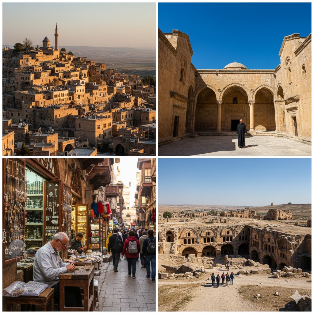 Mardin, Mezopotamya’nın uçsuz bucaksız düzlüğüne hakim bir tepede kurulu, adeta zamanın durduğu efsanevi bir şehirdir. Binlerce yıllık taş binaları, daracık merdivenli sokakları ve farklı inançların huzur içinde yankılanan sesleriyle Mardin, bir şehirden ziyade yaşayan bir tarih sahnesini andırır. Şehrin dokusu o kadar korunmuştur ki, merkezi komple bir "açık hava müzesi" statüsündedir. Şehrin görsel kimliğini oluşturan en temel unsur, bölgeye özgü sarı kalker taşından yapılmış, birbirinin manzarasını ve güneşini asla kapatmayan geleneksel Mardin Evleridir. Bu evlerin arasında uzanan ve "abbara" denilen tünelli geçitler, ziyaretçileri gizemli bir yolculuğa çıkarır. Şehrin silüetini taçlandıran Mardin Ulu Cami, Artuklu döneminden günümüze ulaşan zarif minaresiyle İslam sanatının en güzel örneklerinden biridir. Öte yandan, astronomi ve tıp eğitiminin verildiği Kasımiye ve Zinciriye Medreseleri, taş işçiliğinin adeta bir dantel gibi işlendiği avlularıyla hem bilimin hem de estetiğin buluşma noktalarıdır. Mardin’in ruhunu asıl derinleştiren unsur, "Dillerin ve Dinlerin Şehri" olmasıdır. Şehirde cami minareleri ile kilise çan kuleleri aynı gökyüzüne uzanır. Dünyanın en eski Süryani Ortodoks manastırlarından biri olan Deyrulzafaran Manastırı, binlerce yıllık güneş tapınağı kalıntıları üzerine inşa edilmiş yapısıyla inanç turizminin kalbidir. Midyat ilçesinde yer alan Mor Gabriel Manastırı da Süryani kültürünün görkemini yansıtan bir diğer abidevi yapıdır. Tarih meraklıları için ise şehrin biraz dışında kalan Dara Antik Kenti, devasa yer altı su sarnıçları ve kaya mezarlarıyla Roma İmparatorluğu'nun askeri ve mühendislik dehasını gözler önüne serer.