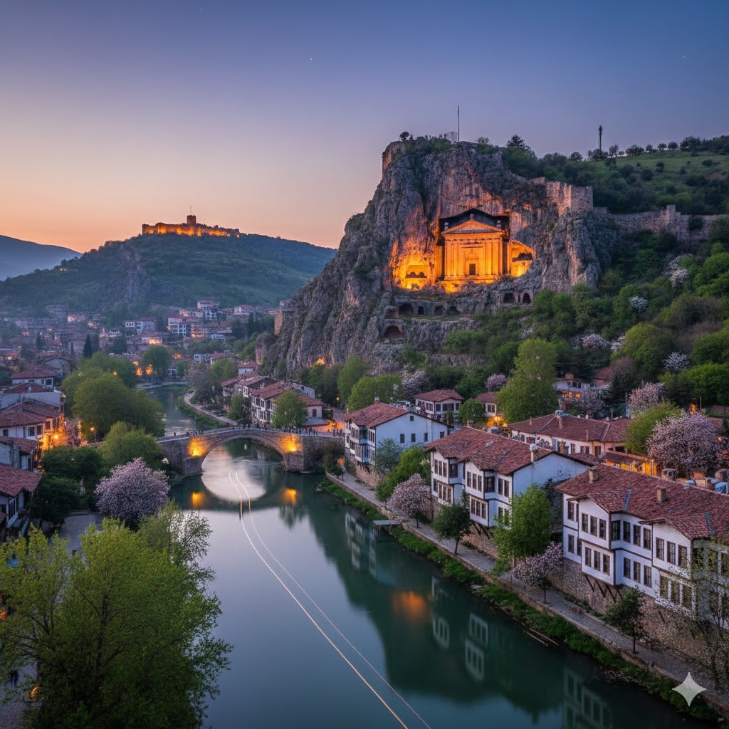 Amasya, Orta Karadeniz’in iç kısımlarında, Yeşilırmak’ın açtığı dar bir vadide kurulu, Türkiye’nin en köklü tarihe sahip şehirlerinden biridir. Şehrin yerleşim tarihi yaklaşık 8.500 yıl öncesine kadar uzanmaktadır. Antik çağlarda "Amaseia" adıyla anılan bu şehir, Pontus Krallığı’na başkentlik yapmış, ardından Roma, Bizans, Selçuklu ve Osmanlı hakimiyetine girmiştir. Dünyanın ilk coğrafyacısı olarak bilinen Strabon’un bu topraklarda doğmuş olması, şehrin kültürel derinliğinin en önemli kanıtlarından biridir. Şehrin fiziksel yapısına damgasını vuran en önemli unsur, Harşena Dağı’nın dik yamaçlarına oyulmuş olan devasa Kral Kaya Mezarlarıdır. Bu mezarlar, vadinin içinden geçen Yeşilırmak ile birleştiğinde ortaya büyüleyici bir manzara çıkarır. Nehrin kıyısı boyunca dizilen tarihi Yalıboyu Evleri ise Osmanlı sivil mimarisinin en zarif örneklerini sergiler. Bu evler, günümüzde butik otel ve restoran olarak kullanılarak şehrin nostaljik atmosferini canlı tutmaktadır.
