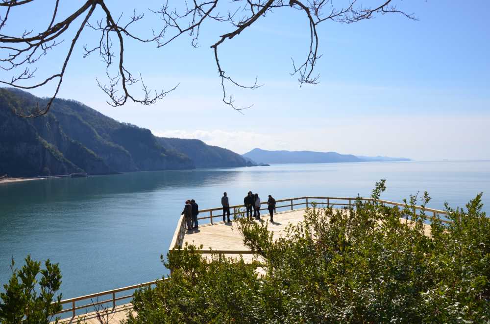 Güzelcehisar'ın 850 metre uzunluğundaki kumsalın batı ucundan başlayan ve denizden bir duvar gibi yükselen sütun yapılı lav kayalıkları deniz kıyısı boyunca uzanarak Mugada'ya kadar ulaşmaktadır.