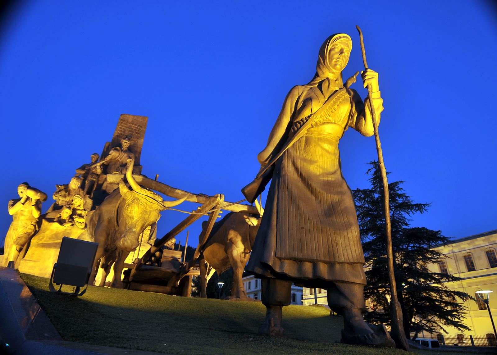 Şehit Şerife Bacı Kurutuluş Savaşı’nda İnebolu’dan Kastamonu ’ya cephane taşıyan kahraman Türk kadınını temsil etmektedir. Şerife Bacı 1921 yılının çetin kış şartlarının hüküm sürdüğü aralık ayında sırtında çocuğu, önünde kağnısı ile kışla önüne kadar gelmiş, mermileri ve çocuğunu korumak uğruna donarak şehit olmuştur.