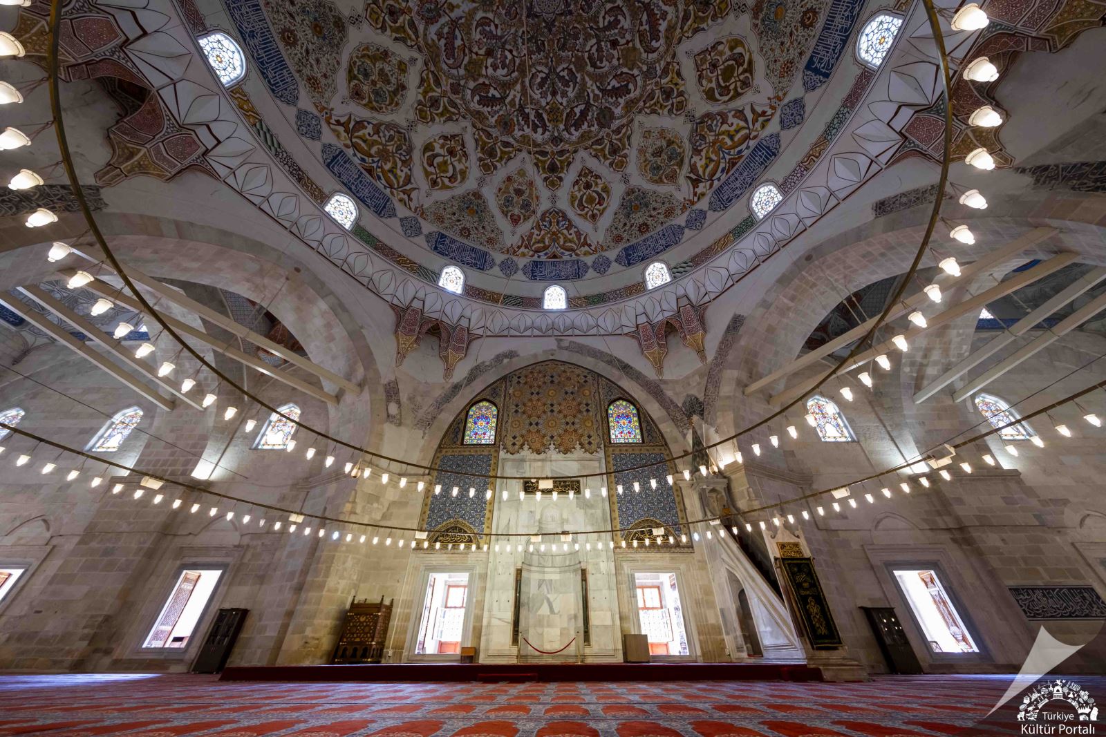 Küçükpazar semtinde Sarayiçi'ne egemen bir tepeye II. Murat tarafından yaptırılmıştır. Yazıtında tarih yoktur. Vakfiyesine ve kaynaklara dayanılarak 1426 yılına tarihlenir. Mimarı bilinmemektedir. Yan mekanlı (zaviyeli) camilerin en güzel örneklerindendir. Ana mekan, arka iki kubbeli mekan ve son cemaat yeri, avlusunda da şadırvan vardır. Cami dış görünüşünün yalınlığına karşın İç süslemesi yönünden XV. yüzyıl Osmanlı Sanatı'nın en önemli yapıtlarındandır. Mihrap ve duvarları kaplayan çiniler, Türk çini sanatının en güzel örneklerindendir. Mihrap önü kubbeli mekanın duvarları doğal çiçek motifleri ile işlenmiş altıgen mavi, ak çini levhalarla, bunların arası da firuze renkli düz üçgen levhalarla kaplıdır. Çini mihrapta renkli sır ve sıratlı tekniği başarılı bir biçimde kullanılmıştır